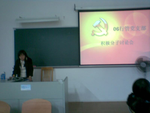12月8日19时30分,06行政管理党支部第27期党校学员在南校区教学楼B108举行了主题为“如何用实际行动争当合格的共产党员”的讨论会。这次讨论会是在他们经过党校学习之后一次深层次的讨论会。