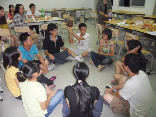 会议开始了,首先由两位主持人实践部副部李剑锋和文宣部副部郑韵诗上台讲述了今天开会的主题和相关内容,此次会议的第一个内容——新干事自我介绍,干事们要在15秒内让会议中的所有人都记住他/她的姓名。于是,新干事们都一一到台上进行了自我介绍,实践部的干事首先上台,然后组织部跟文宣部的干事陆续上台进行了自我介绍。干事们自我介绍完后,便是游戏环节,共有“萝卜蹲”、“蒙娜丽莎芭蕉树”和“你比我猜”三个游戏。欢笑声一直在A303这个教室中回荡,所有的成员都沉浸在这热闹的氛围之中。